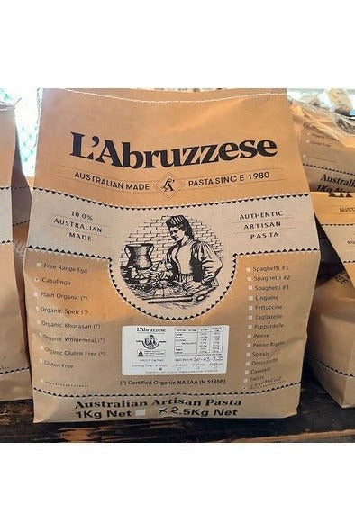 L'Abruzzese Pastas are made from 100% highest grade Durum Wheat Semolina grown on the 'Golden Durum Triangle' in New South Wales; the Durum Wheat Semolina grown in this location is considered among the best Worldwide, for the Highest Nutritional Content, Taste and Digestibility; eat local, eat better!